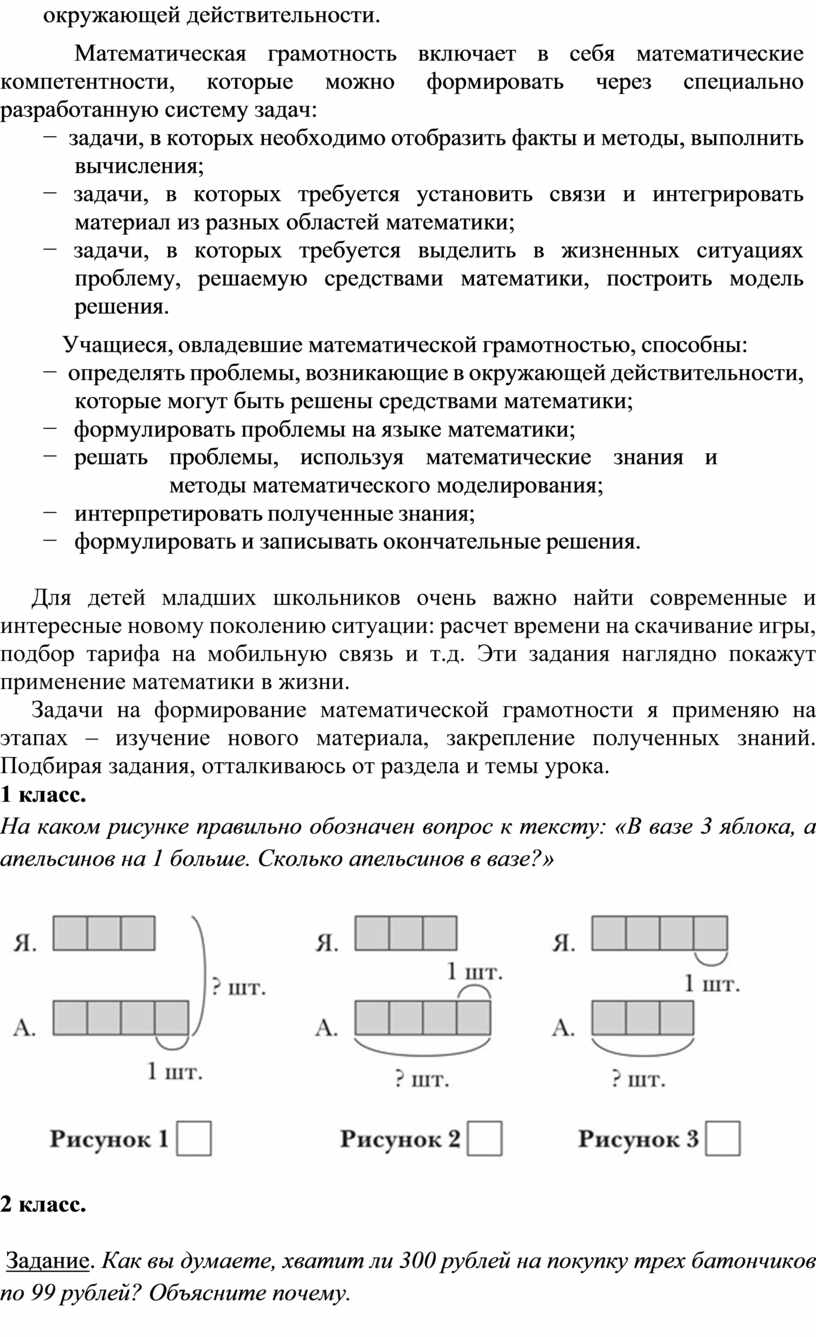 Математическая грамотность включает в себя математические компетентности, которые можно формировать через специально разработанную систему задач: