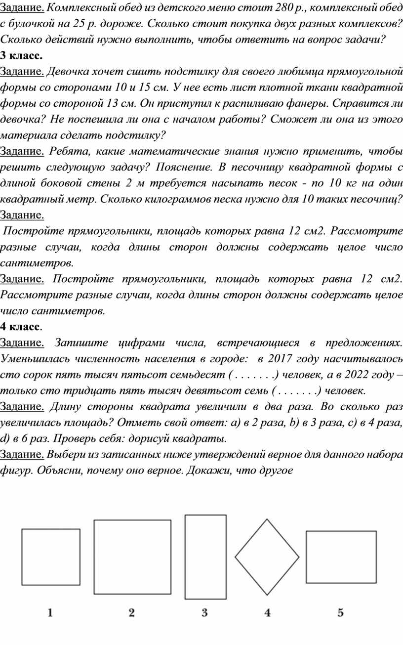 Задание. Ребята, какие математические знания нужно применить, чтобы решить следующую задачу? Пояснение. В песочницу квадратной формы с длиной боковой стены 2 м требуется насыпать песок - по 10 кг на один квадратный метр. Сколько килограммов песка нужно для 10 таких песочниц?