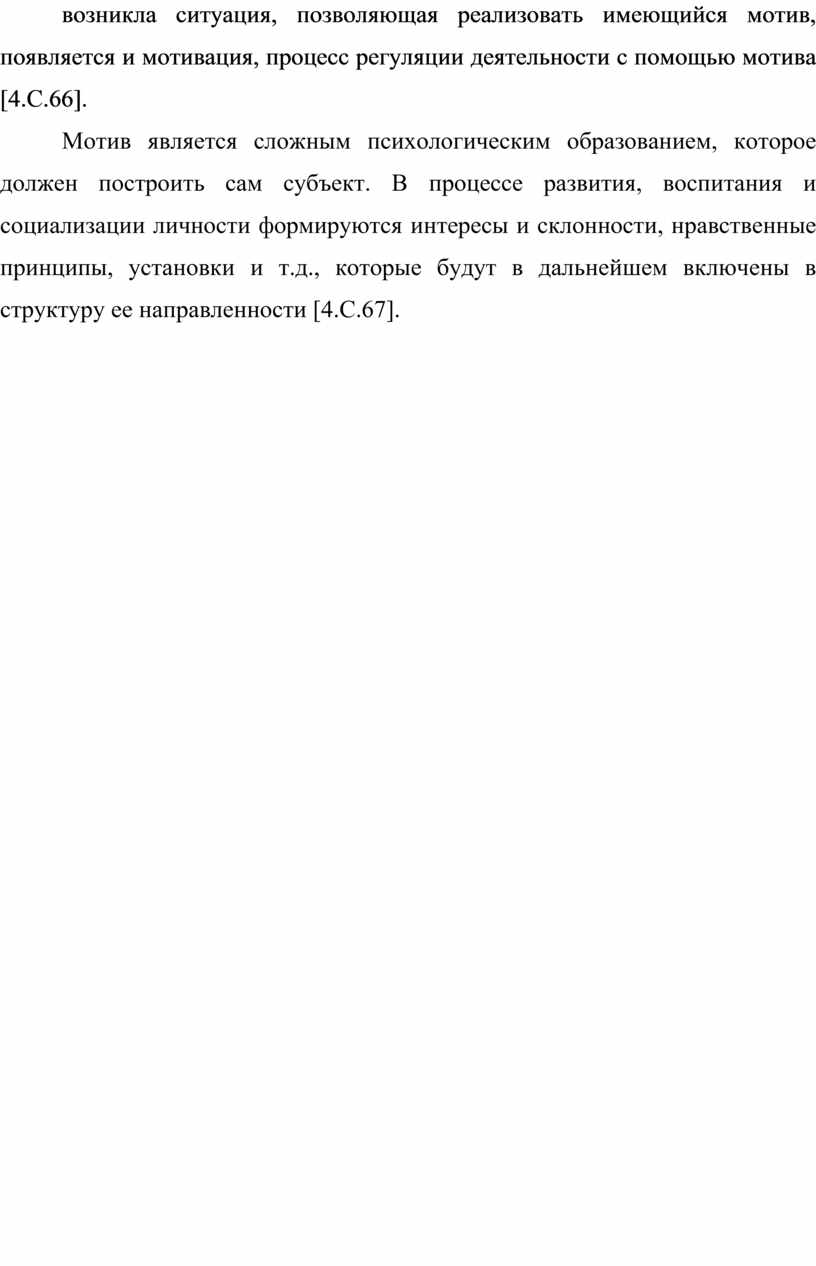 Мотив является сложным психологическим образованием, которое должен построить сам субъект. В процессе развития, воспитания и социализации личности формируются интересы и склонности, нравственные принципы, установки и т.д., которые будут в дальнейшем включены в структуру ее направленности [4.С.67].