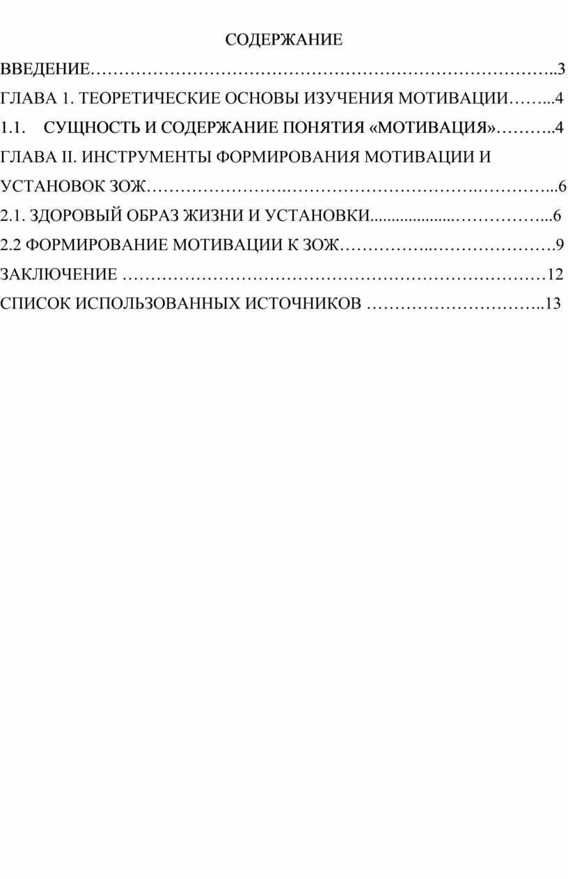 ГЛАВА II. ИНСТРУМЕНТЫ ФОРМИРОВАНИЯ МОТИВАЦИИ И УСТАНОВОК ЗОЖ…………………….…………………………….…………...6