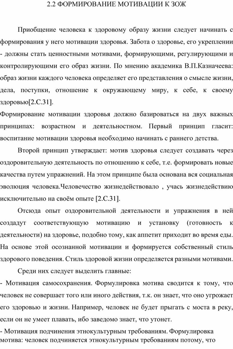 2.2 ФОРМИРОВАНИЕ МОТИВАЦИИ К ЗОЖ