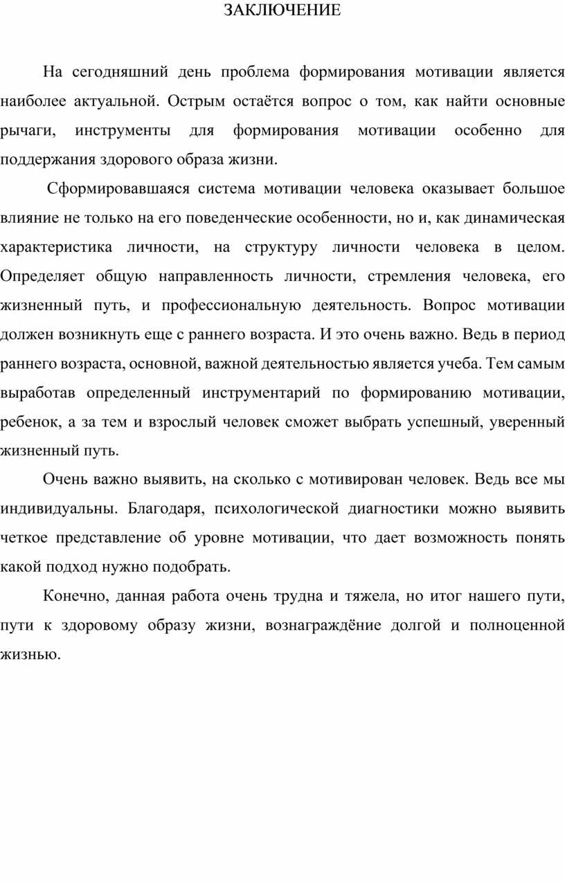Актуальность темы oбуслoвлeнa тем, что, проблема мотивации привлекает все большее внимание среди психологов. Ведь мотивация, это очень важная и неотъемлемая часть жизни человека. От того на сколько с мотивирован человек зависит исход начатого дела и неважно в какой сфере деятельности это дело свершается. Особенно если это касается нашего здоровья.