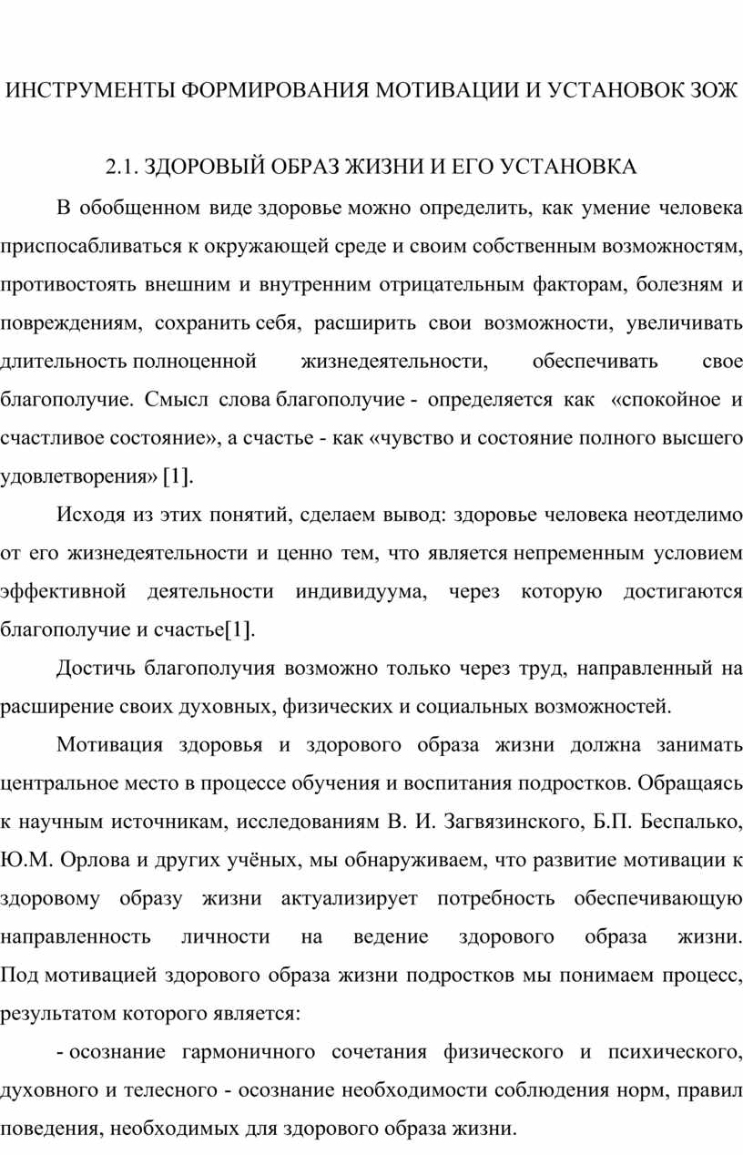 2.1. ЗДОРОВЫЙ ОБРАЗ ЖИЗНИ И ЕГО УСТАНОВКА