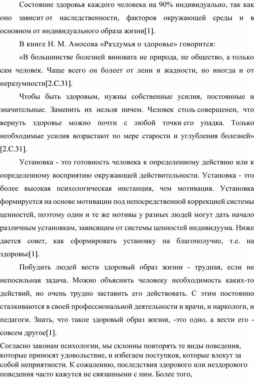 2.1. ЗДОРОВЫЙ ОБРАЗ ЖИЗНИ И УСТАНОВКИ....................……………...6