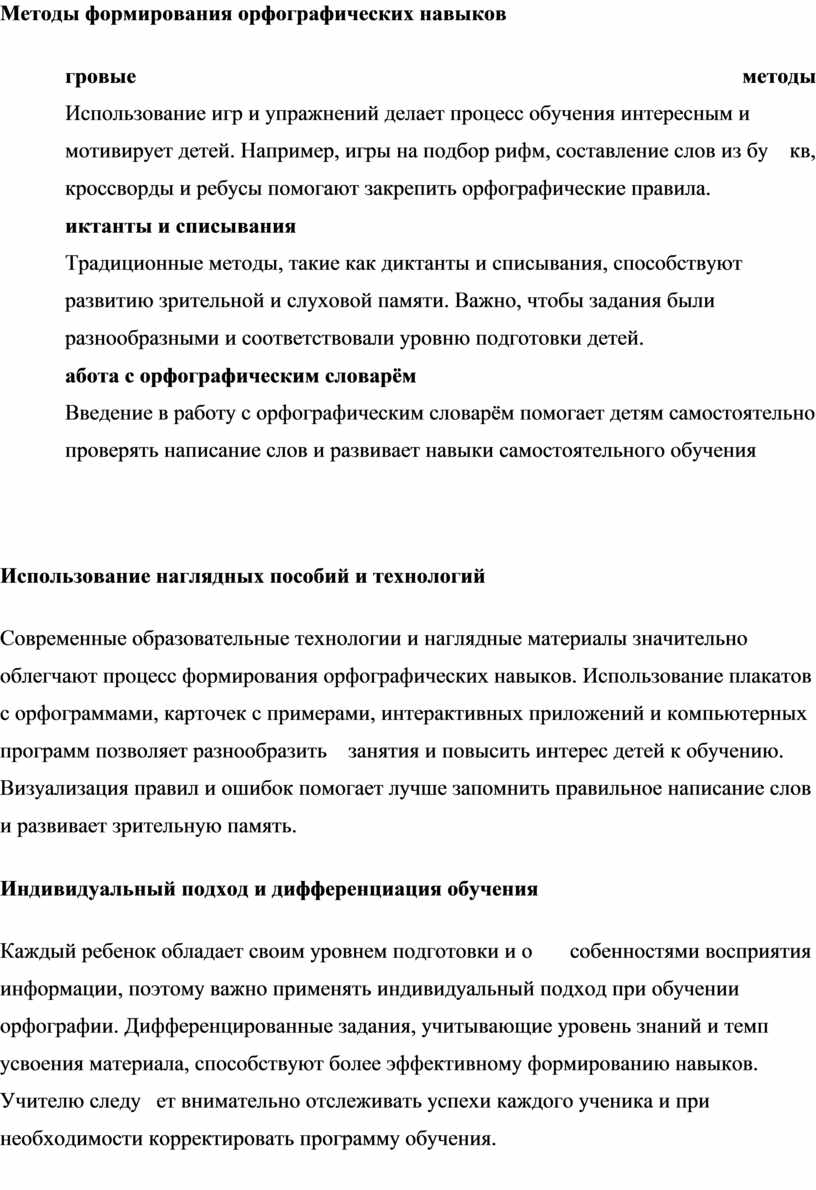 Современные образовательные технологии и наглядные материалы значительно облегчают процесс формирования орфографических навыков. Использование плакатов с орфограммами, карточек с примерами, интерактивных приложений и компьютерных программ позволяет разнообразить занятия и повысить интерес детей к обучению. Визуализация правил и ошибок помогает лучше запомнить правильное написание слов и развивает зрительную память.