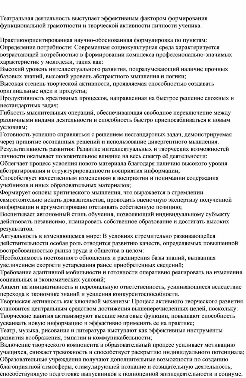 Театральная деятельность выступает эффективным фактором формирования функциональной грамотности и творческой активности личности ученика.