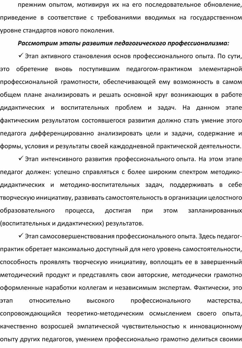 Рассмотрим этапы развития педагогического профессионализма: