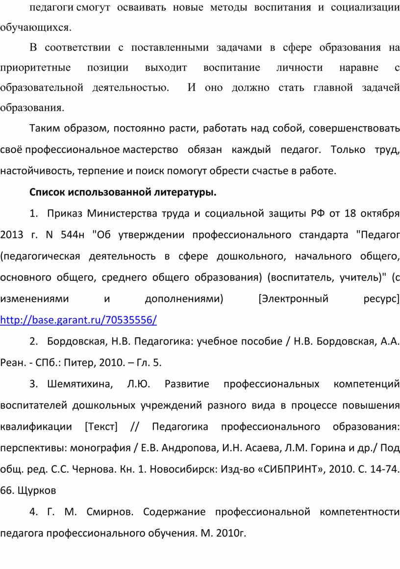 4. Г. М. Смирнов. Содержание профессиональной компетентности педагога профессионального обучения. М. 2010г.