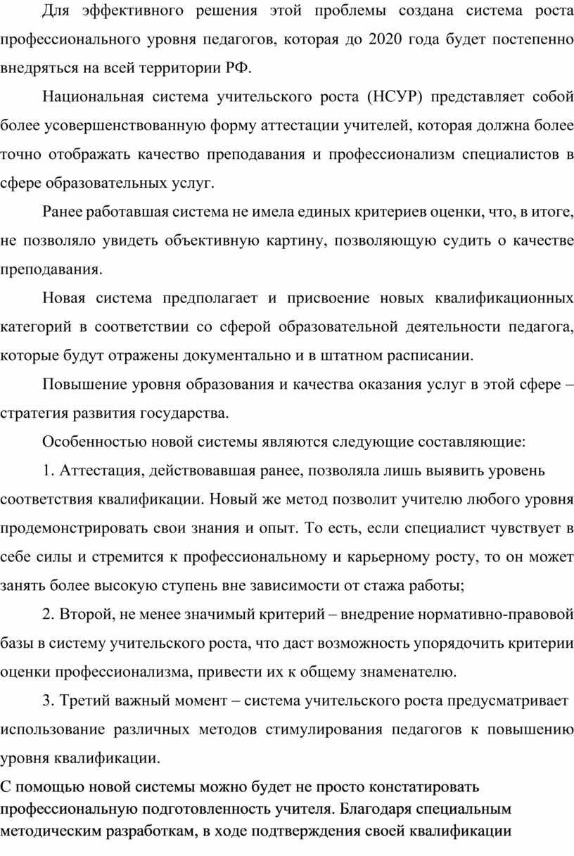 Для эффективного решения этой проблемы создана система роста профессионального уровня педагогов, которая до 2020 года будет постепенно внедряться на всей территории РФ.