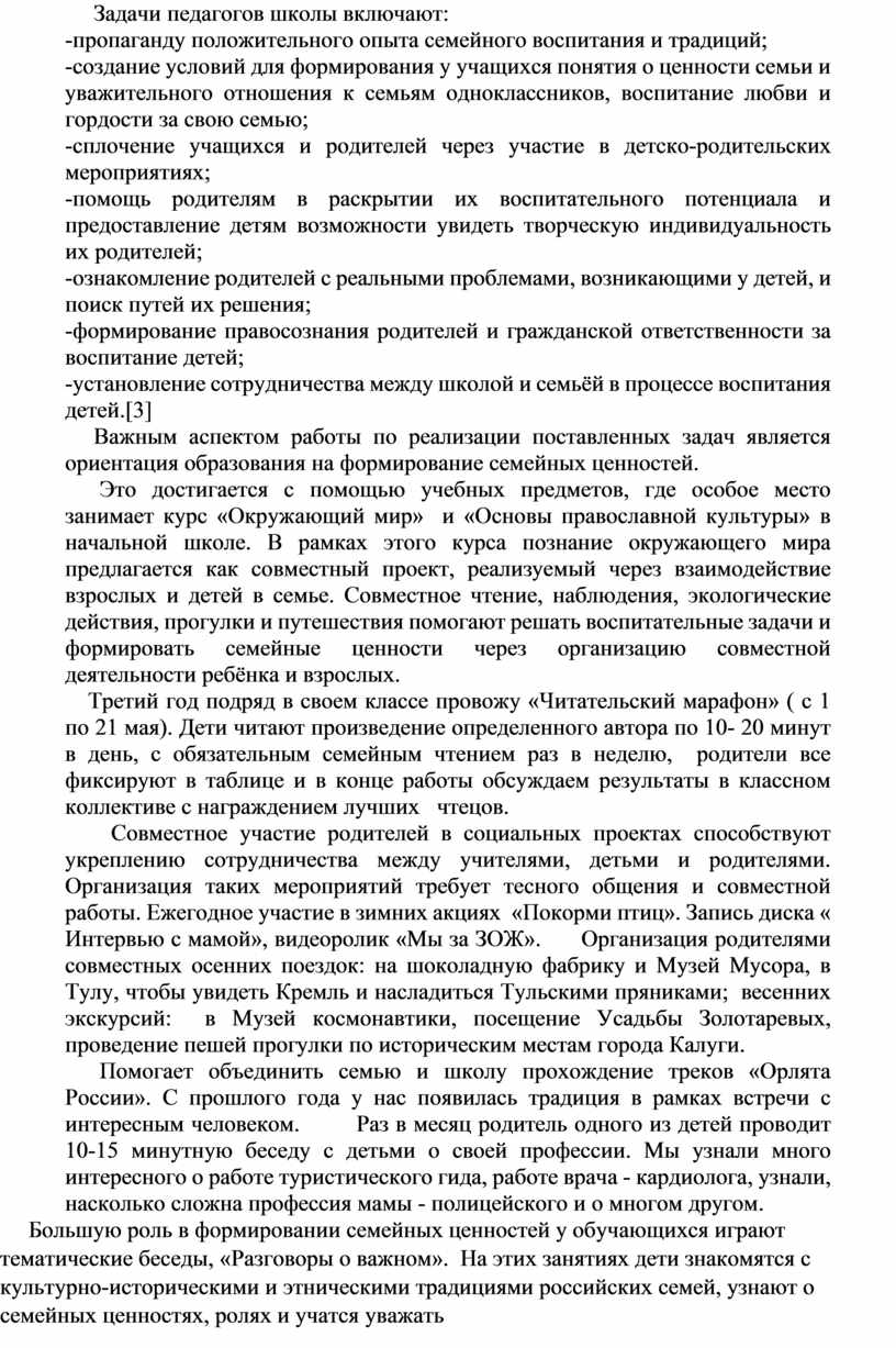 Важным аспектом работы по реализации поставленных задач является ориентация образования на формирование семейных ценностей.