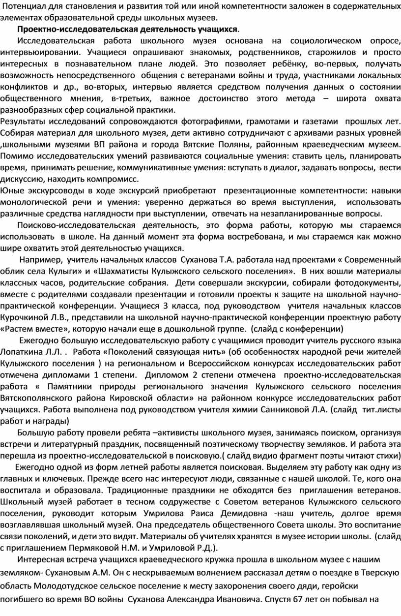 Огромную воспитательную роль в формировании данных компетенций играют школьные музеи.