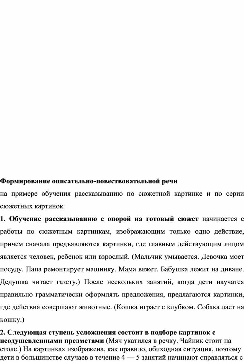 на примере обучения рассказыванию по сюжетной картинке и по серии сюжетных картинок.