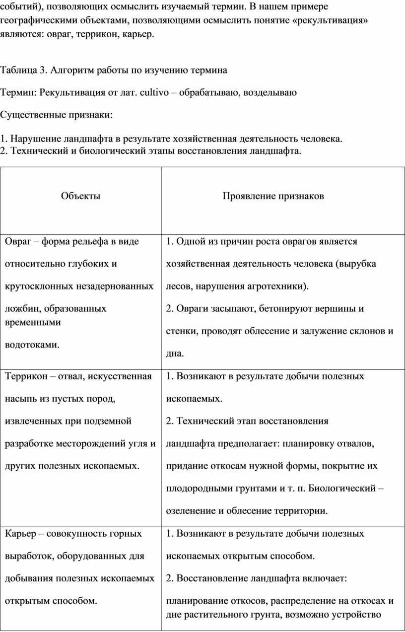 географическими объектами, позволяющими осмыслить понятие «рекультивация»