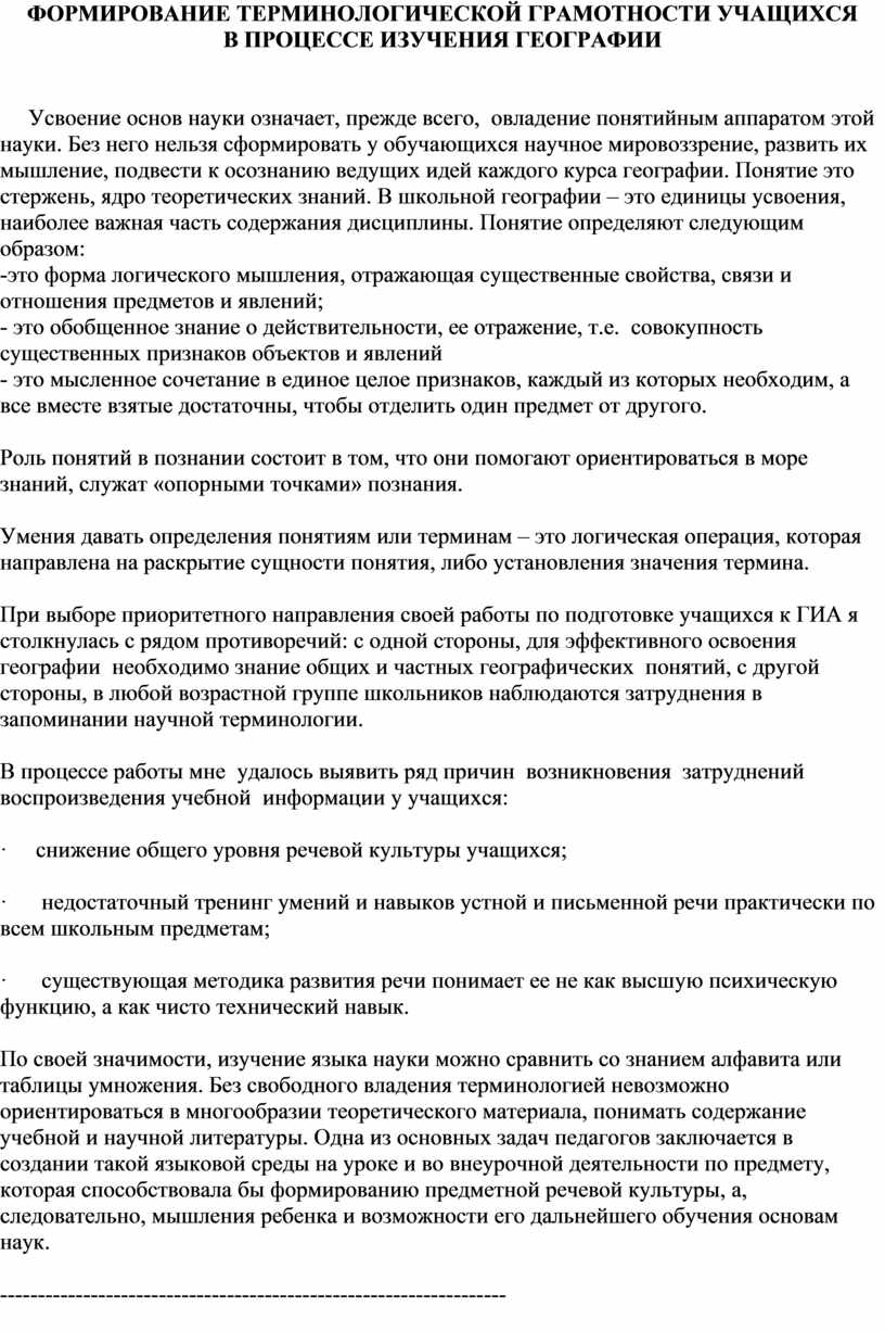 ФОРМИРОВАНИЕ ТЕРМИНОЛОГИЧЕСКОЙ ГРАМОТНОСТИ УЧАЩИХСЯ