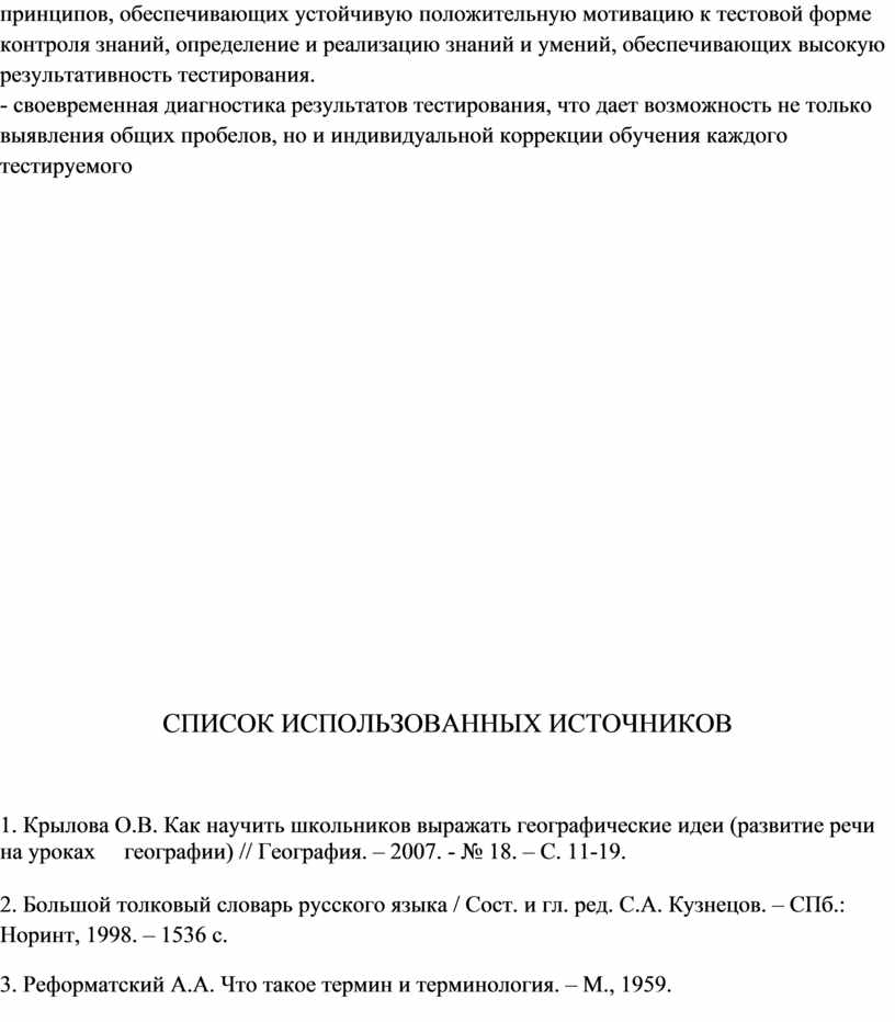 1. Крылова О.В. Как научить школьников выражать географические идеи (развитие речи на уроках географии) // География. – 2007. - № 18. – С. 11-19.