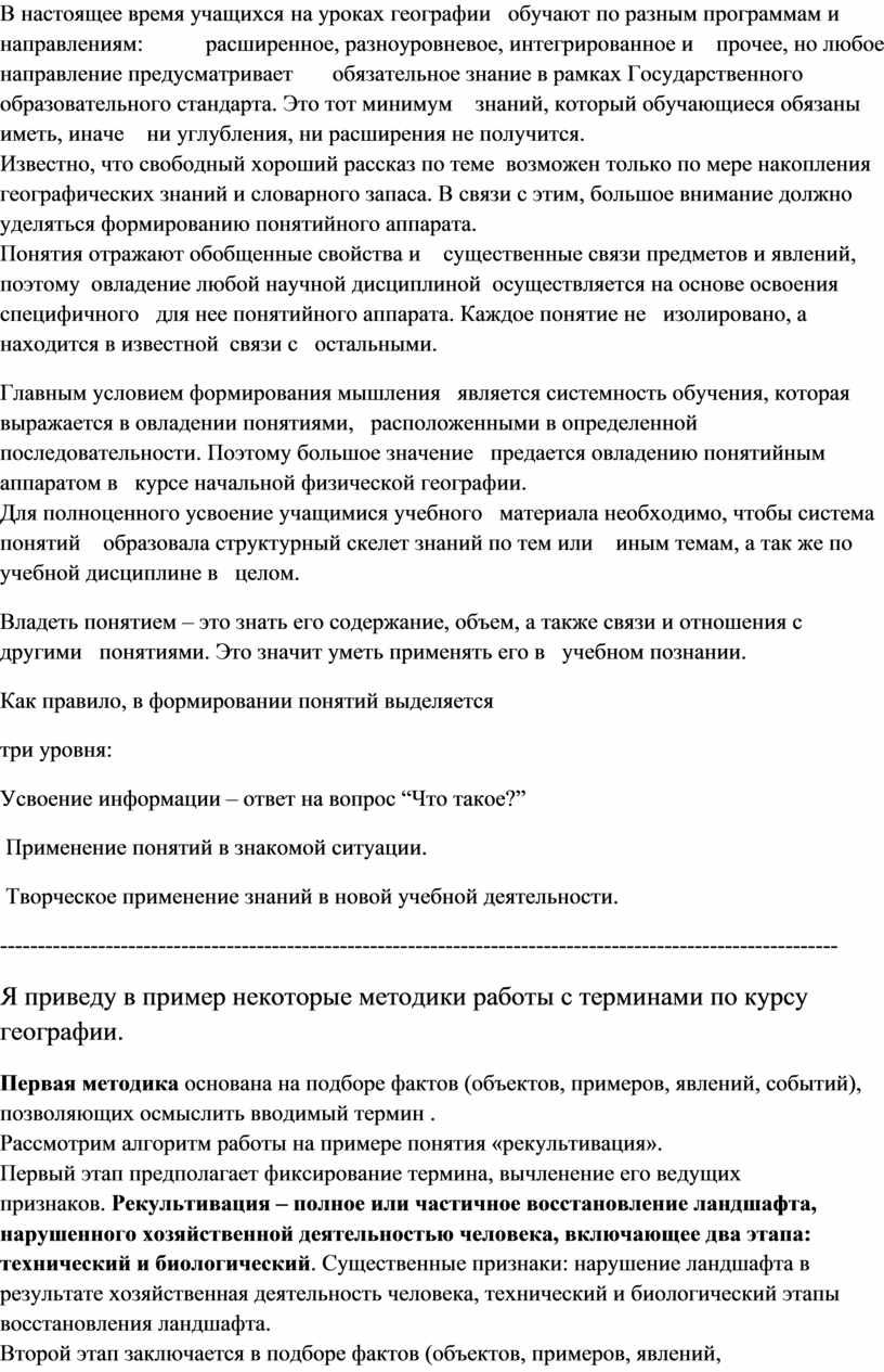 К сожалению, работа над географическими терминами нередко сводится к работе над их определениями, которая в свою очередь, ограничивается тем, чтобы выучить самый точный, самый верный, самый-самый вариант.