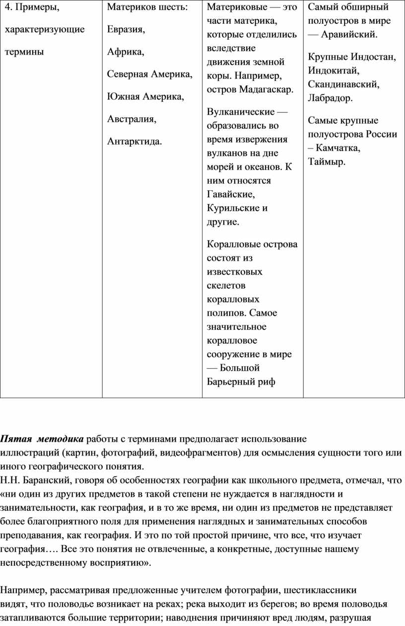 Я приведу в пример некоторые методики работы с терминами по курсу географии.