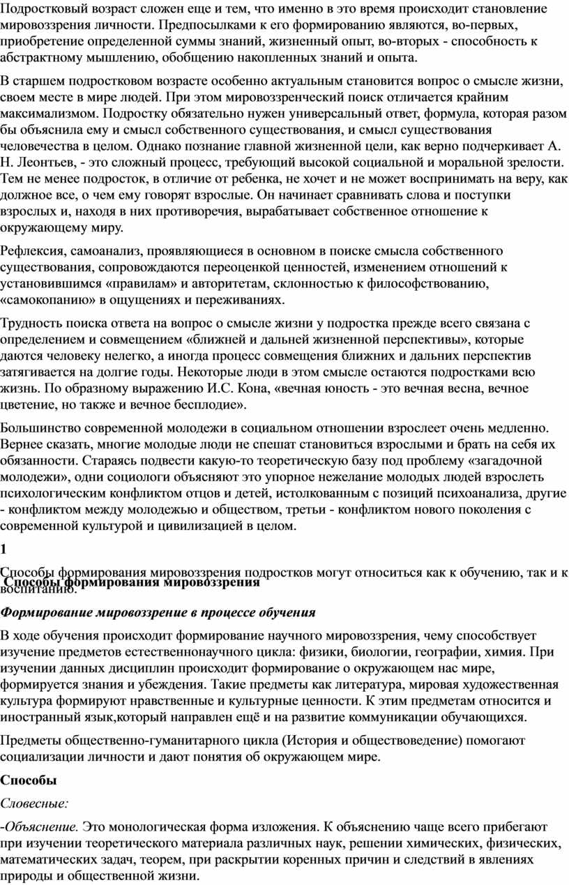 Способы формирования мировоззрения подростков могут относиться как к обучению, так и к воспитанию.