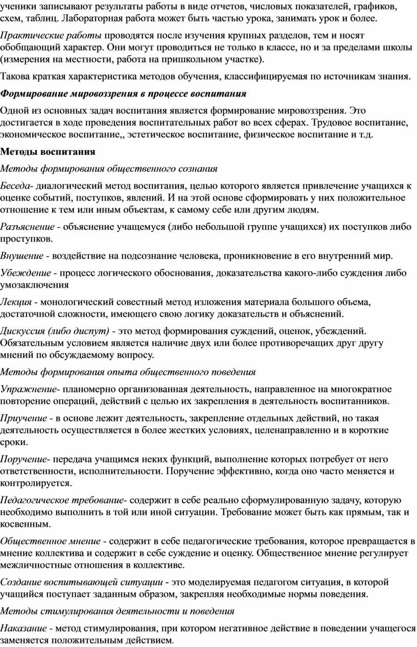 Однако не стоит забывать, что мировоззрение формируется не только различными способами обучение и воспитания (во время учебно-воспитательного процесса) а так же под влиянием семьи, друзей, внешкольных организаций и т.д.