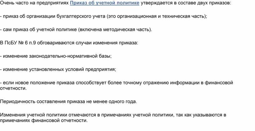 Очень часто на предприятиях Приказ об учетной политике утверждается в составе двух приказов: