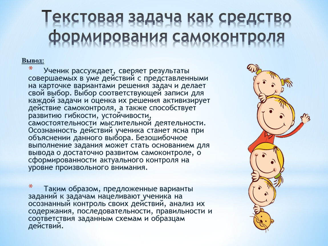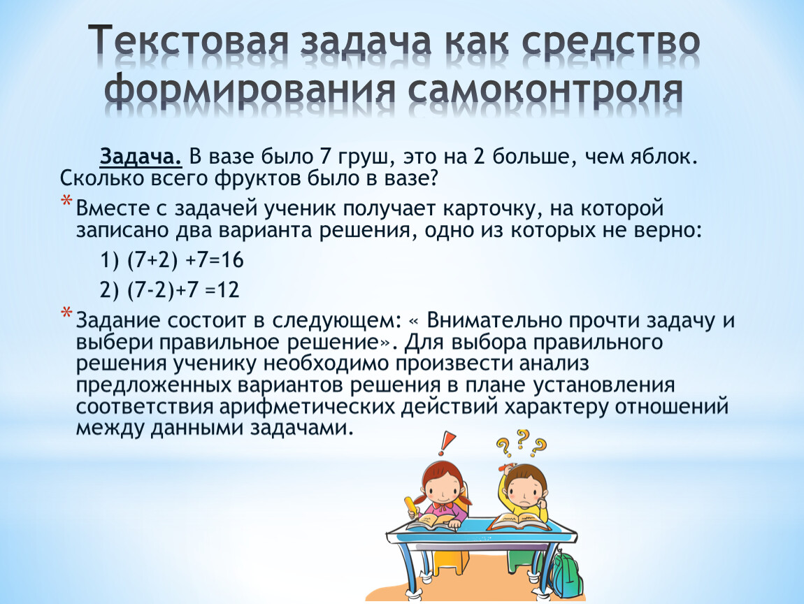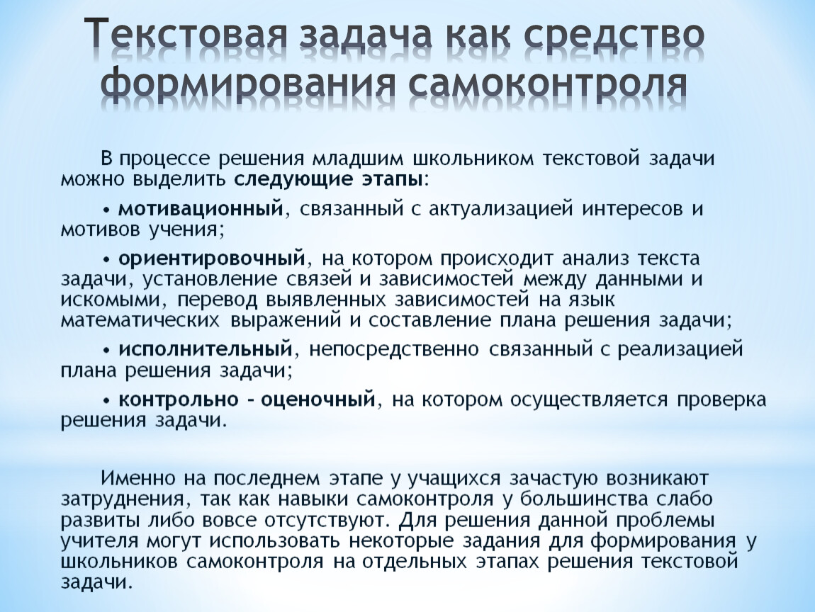 Текстовая задача как средство формирования самоконтроля
