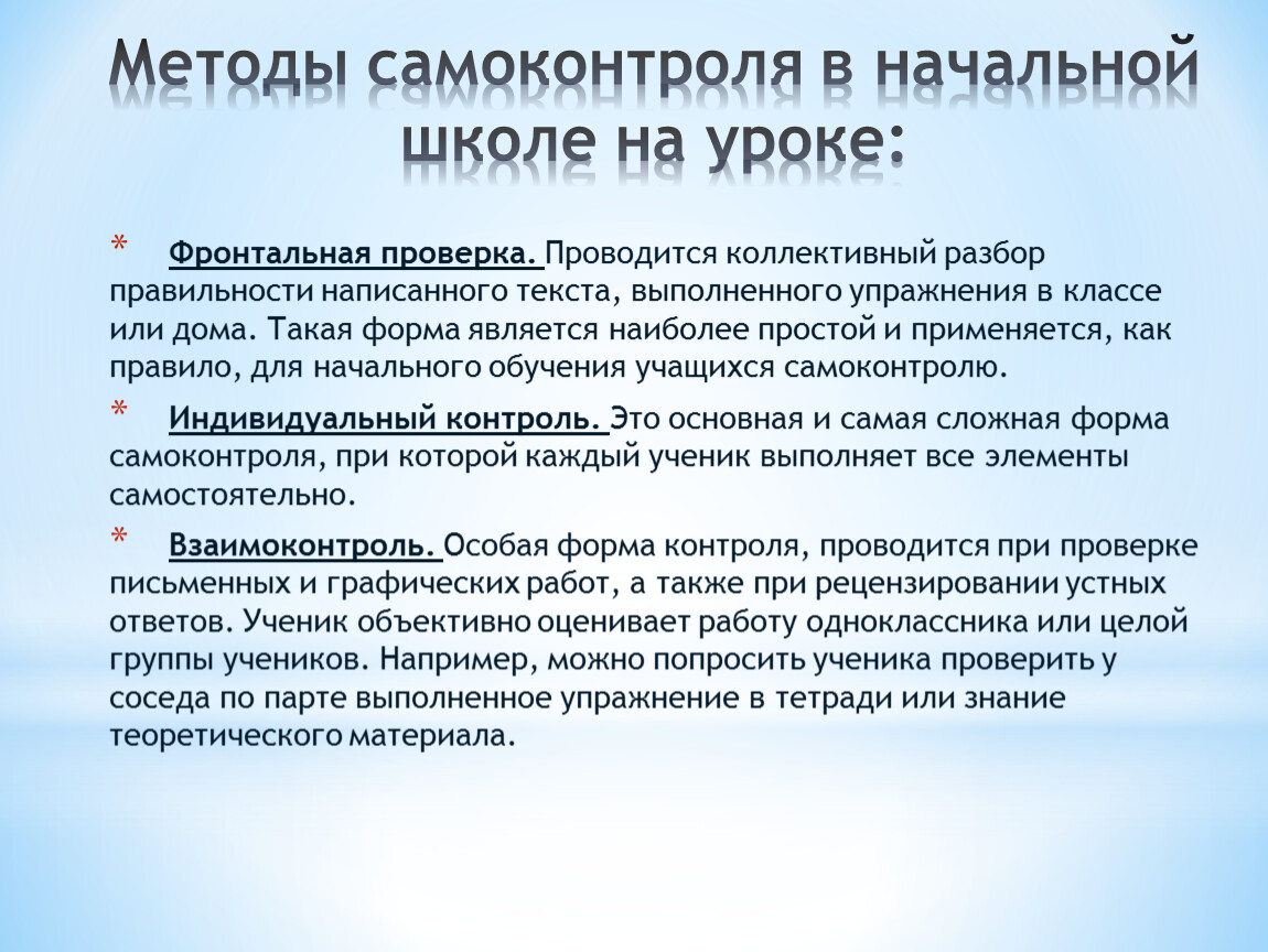 Методы самоконтроля в начальной школе на уроке: