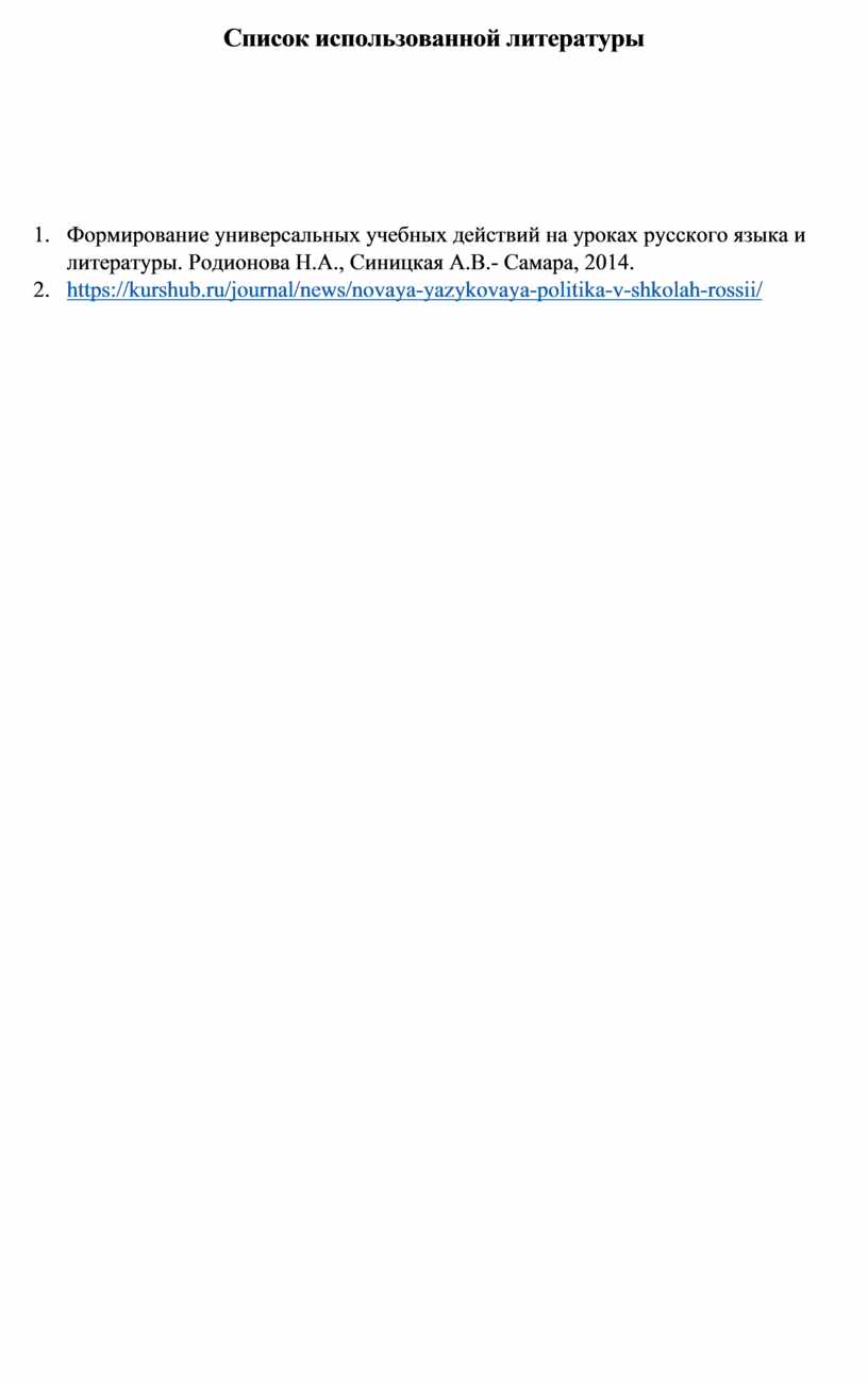 1. Формирование универсальных учебных действий на уроках русского языка и литературы. Родионова Н.А., Синицкая А.В.- Самара, 2014.