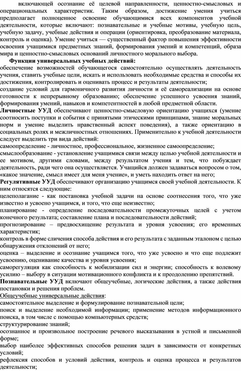 Способность обучающегося самостоятельно успешно усваивать новые знания, формировать умения и компетентности, включая самостоятельную организацию этого процесса, т. е. умение учиться, обеспечивается тем, что универсальные учебные действия как обобщённые действия открывают учащимся возможность широкой ориентации как в различных предметных областях, так и в строении самой учебной деятельности, включающей осознание её целевой направленности, ценностно-смысловых и операциональных характеристик. Таким образом, достижение умения учиться предполагает полноценное освоение обучающимися всех компонентов учебной деятельности, которые включают: познавательные и учебные мотивы, учебную цель, учебную задачу, учебные действия и операции (ориентировка, преобразование материала, контроль и оценка). Умение учиться — существенный фактор повышения эффективности освоения учащимися предметных знаний, формирования умений и компетенций, образа мира и ценностно-смысловых оснований личностного морального выбора.