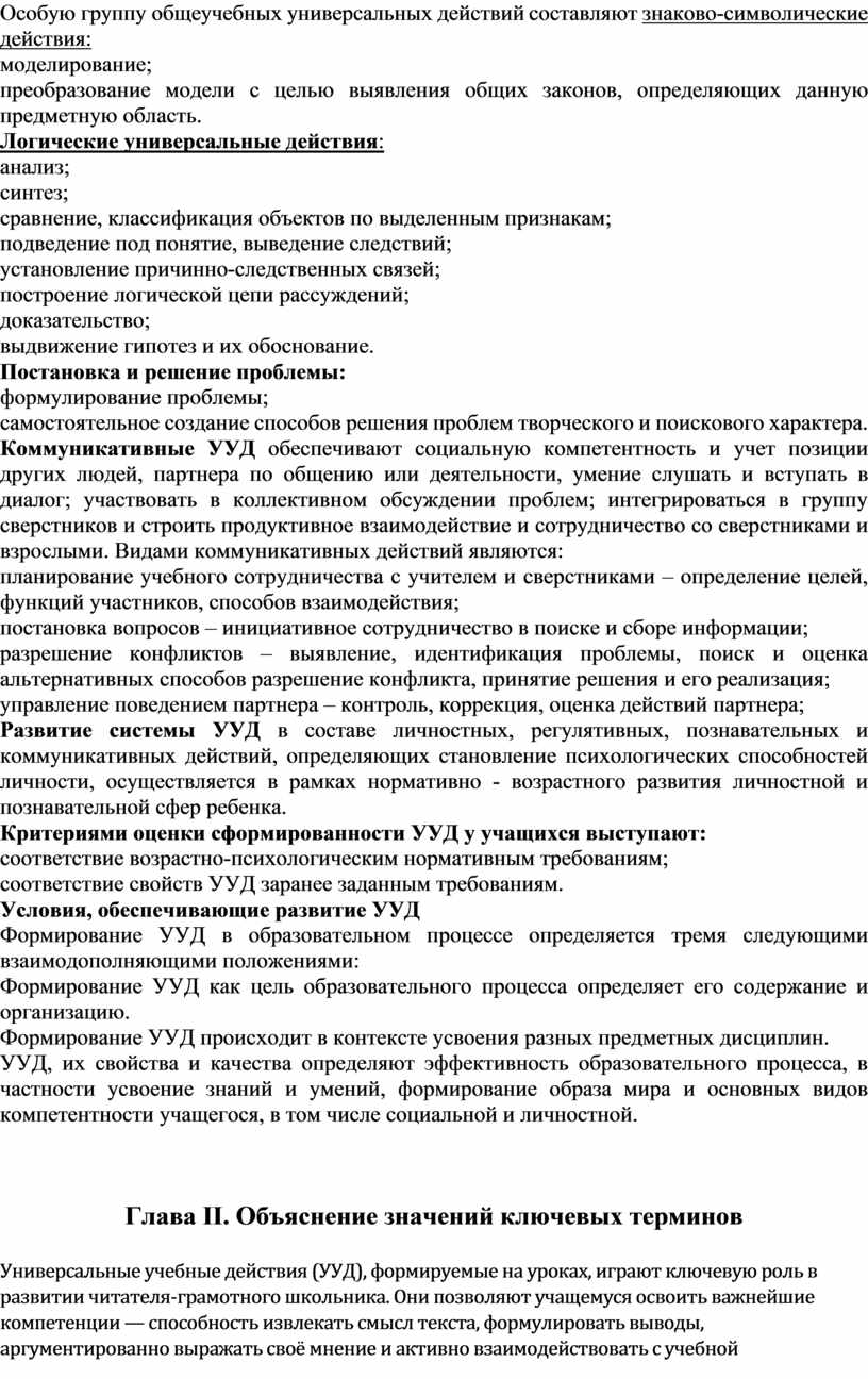 Глава I.Теоретический обзор. Функции универсальных учебных действий