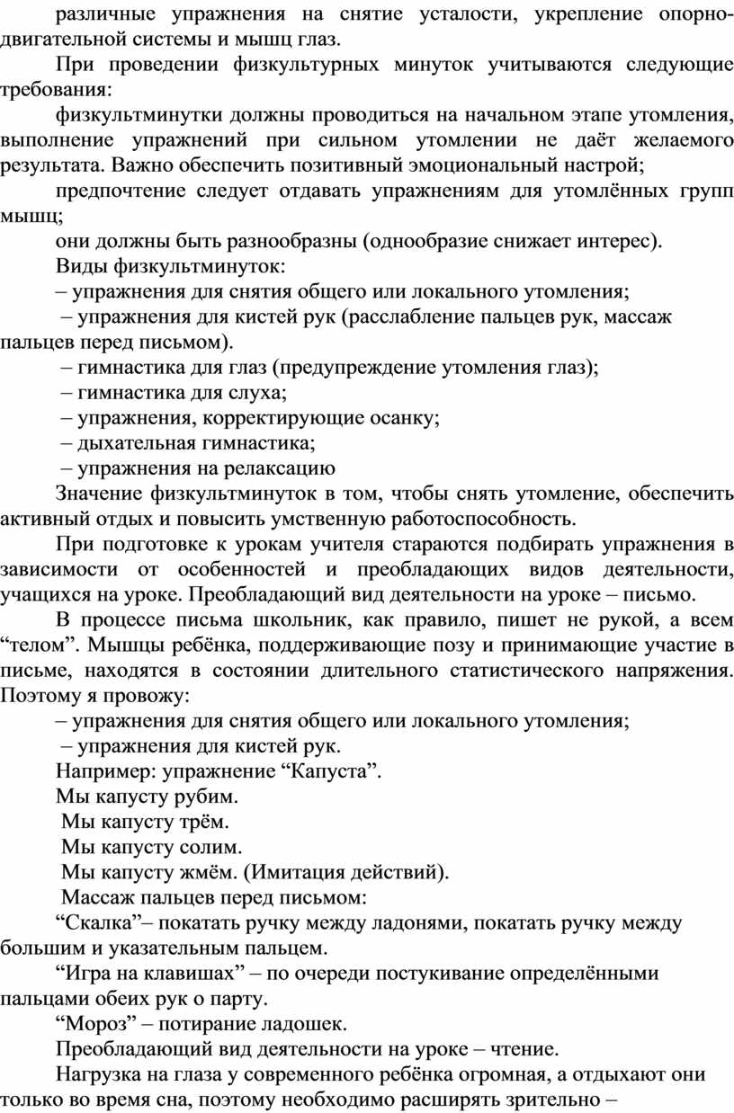 Виды физкультминуток: