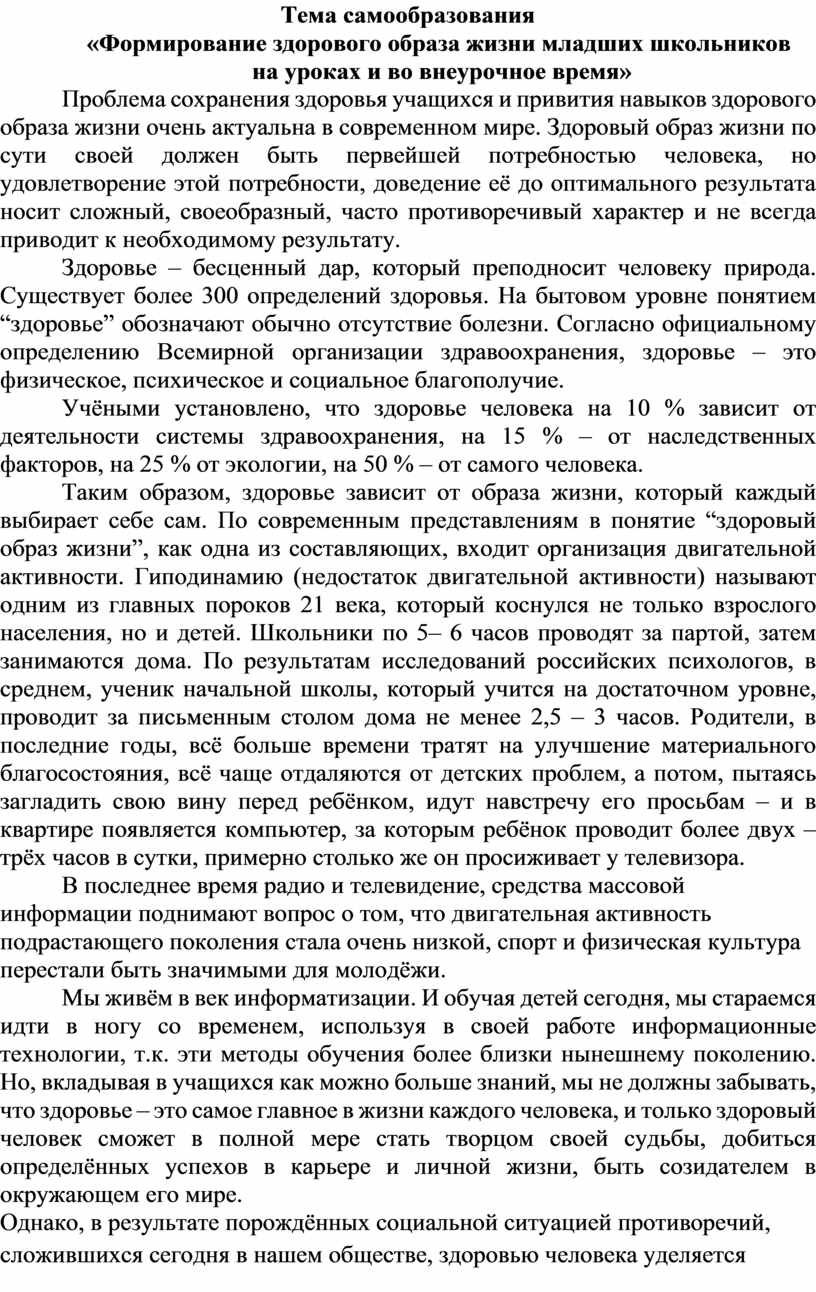 «Формирование здорового образа жизни младших школьников