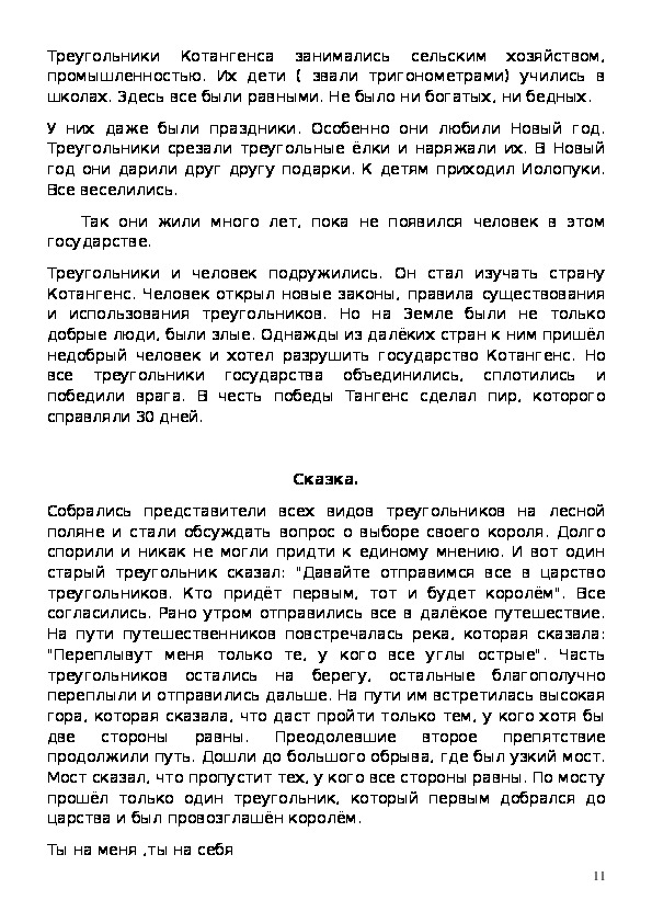 треугольники. Они были вежливыми, любили друг друга, никогда