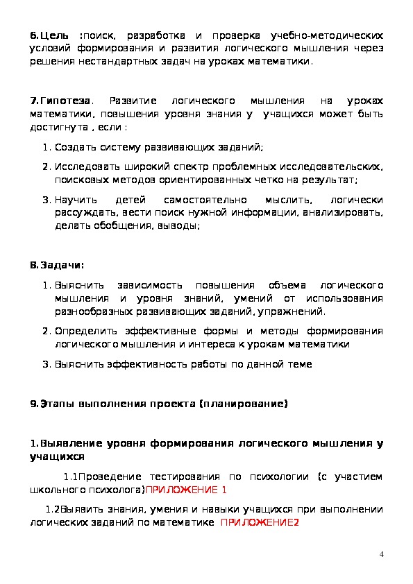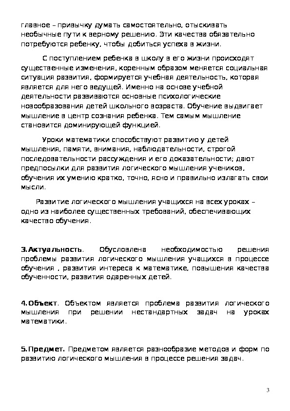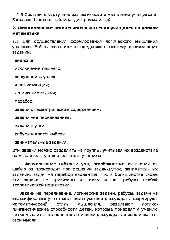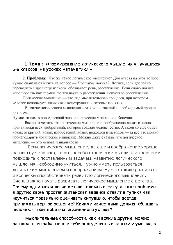 1.Тема : «Формирование логического мышления у учащихся 5-6 классов на уроках математики ».