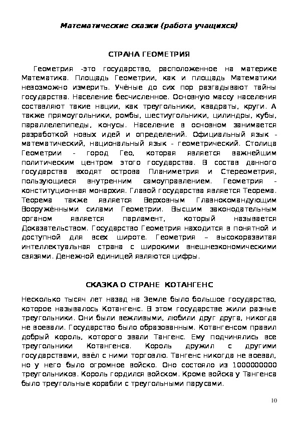 СКАЗКА О СТРАНЕ КОТАНГЕНС