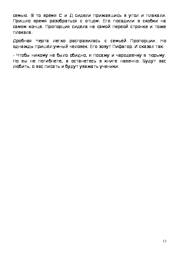 Осталась только одна семья, семья Пропорции. Она не смогла