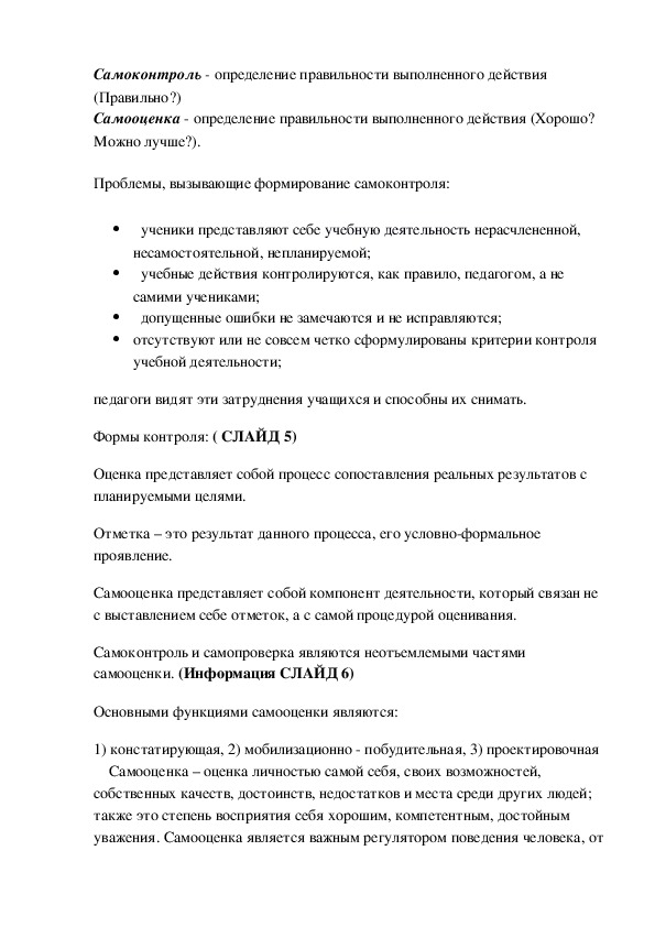 смысл самооценки состоит в самоконтроле школьника, его саморегуляции,