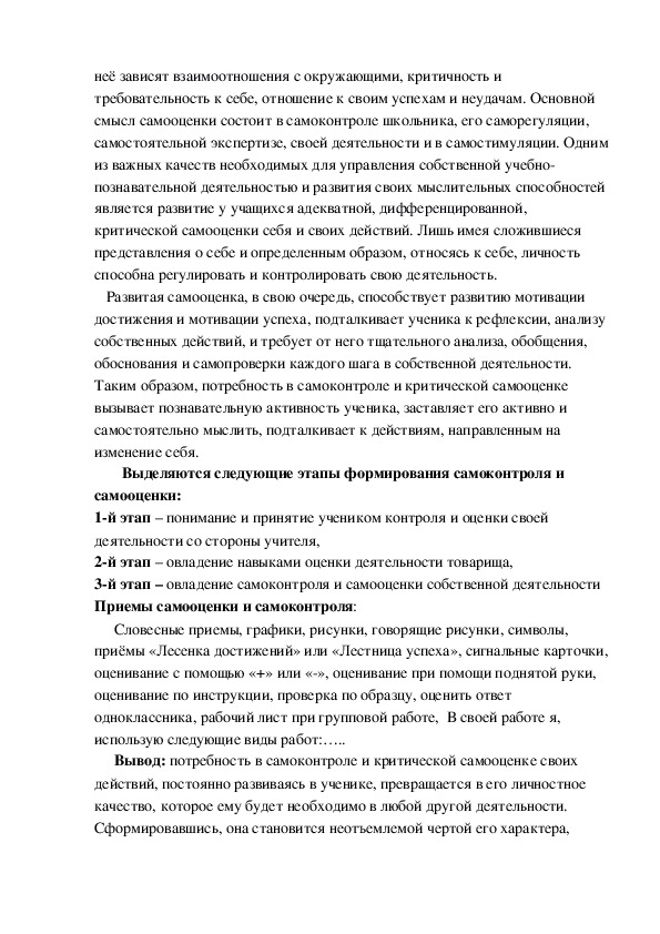 самоанализу, самоконтролю, самооценке собственных возможностей.