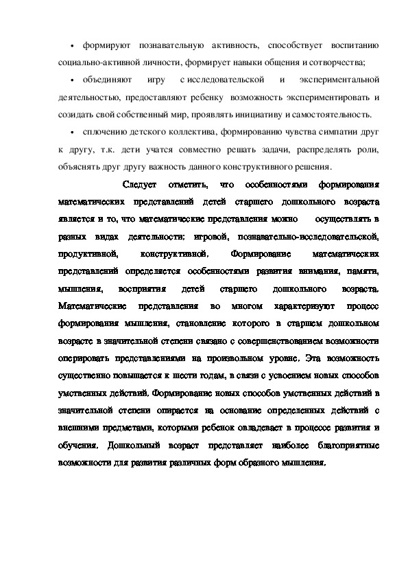математических представлений детей старшего дошкольного возраста