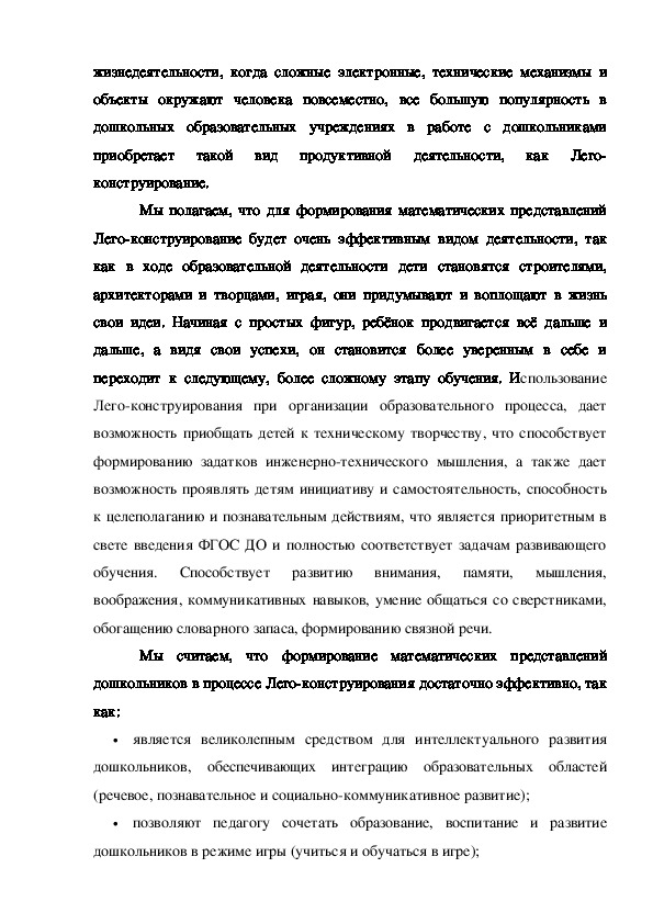 дошкольников в процессе Легоконструирования достаточно эффективно, так