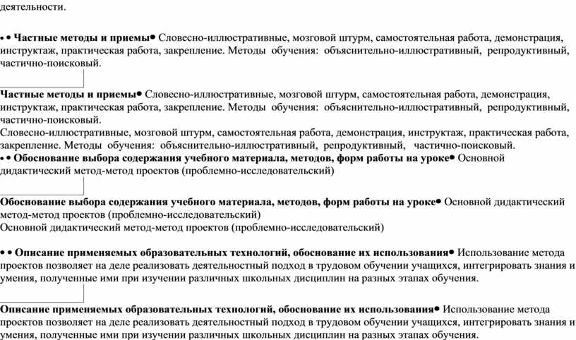 Описание применяемых образовательных технологий, обоснование их использования |