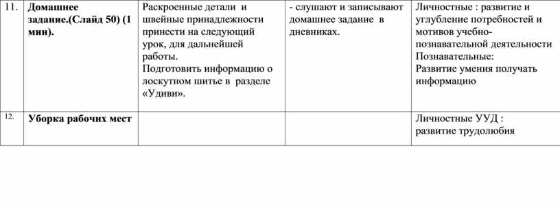 Раскроенные детали и швейные принадлежности принести на следующий урок, для дальнейшей работы. Подготовить информацию о лоскутном шитье в разделе «Удиви».
