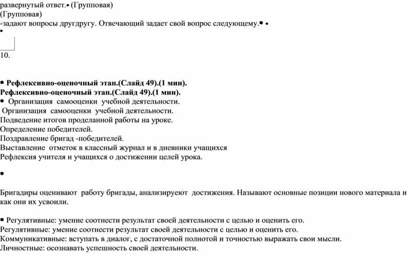 Рефлексивно-оценочный этап.(Слайд 49).(1 мин).