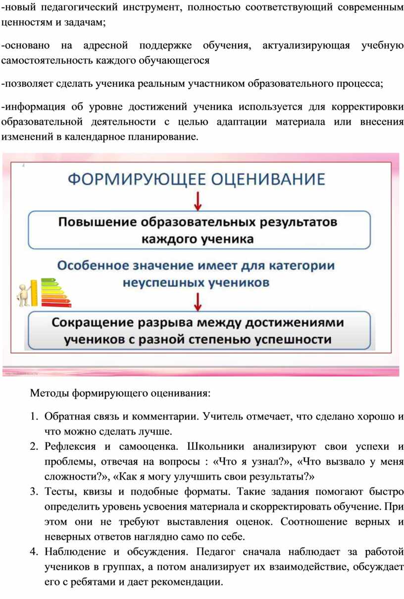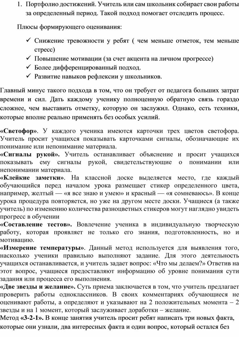 Методы формирующего оценивания: