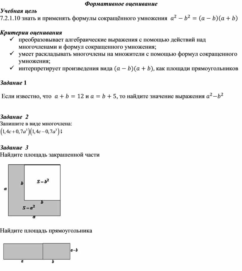 ü умеет раскладывать многочлены на множители с помощью формул сокращенного умножения;