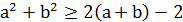 Докажите,что сумма квадратов двух чисел не меньше чем разность удвоенной суммы этих чисел и числа два.