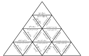 В начале урока ученики объединились в группы. Этим группам раздаются карточки Tarsia. Цель задания: сопоставить пример с его ответом и получить следующий треугольник: