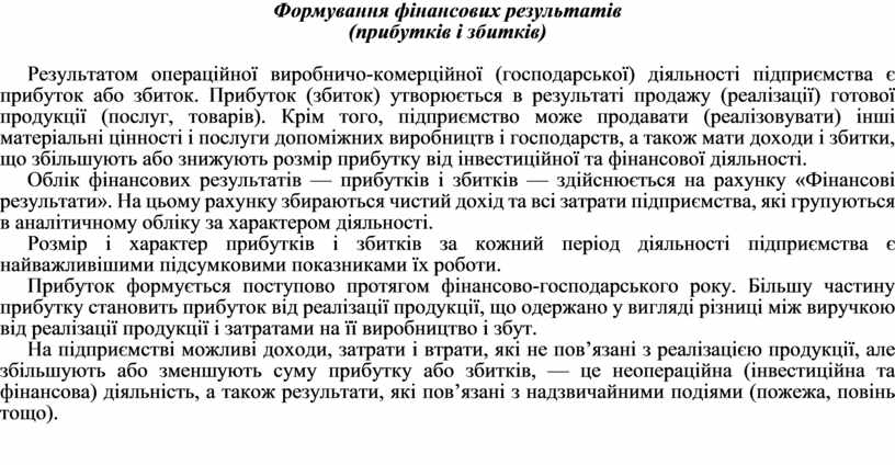 Розмір і характер прибутків і збитків за кожний період діяльності підприємства є найважливішими підсумковими показниками їх роботи.