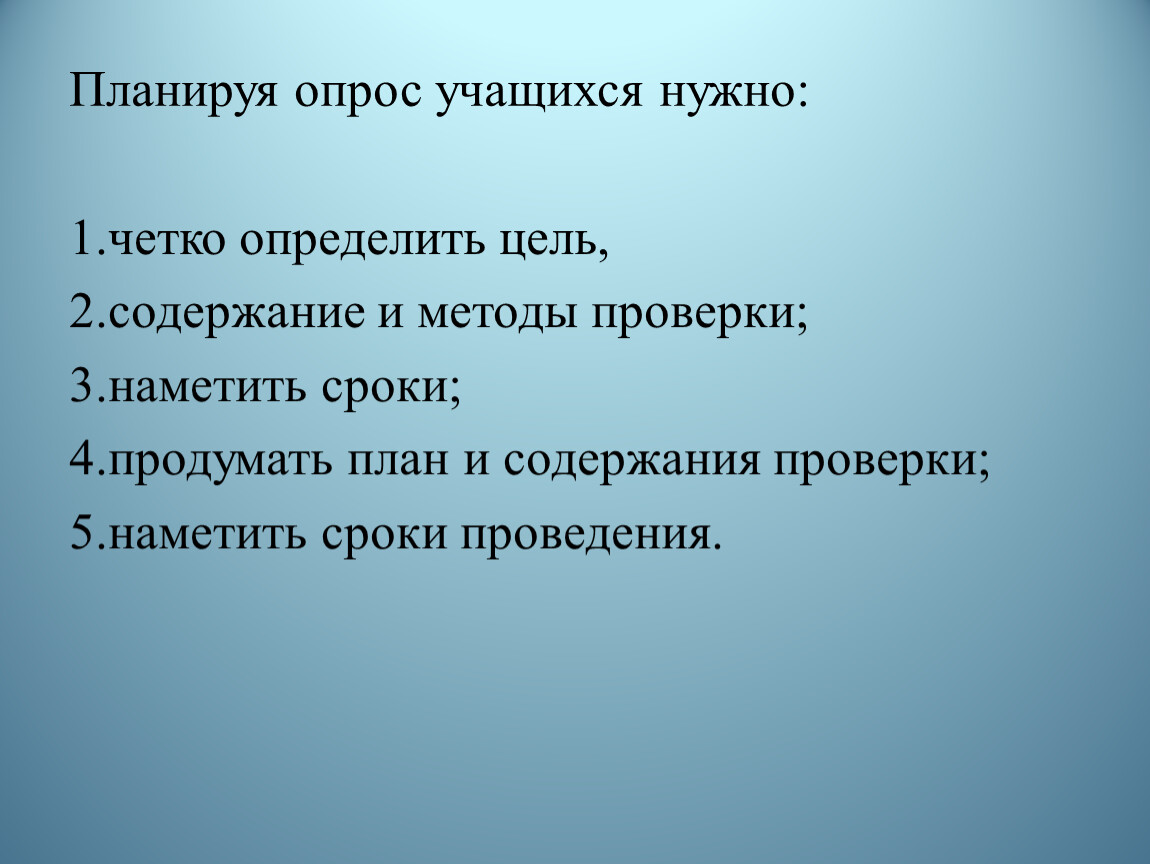 При фронтальном опросе за короткое время проверяется состояние знаний учащихся всего класса по определенному вопросу или группе вопросов.
