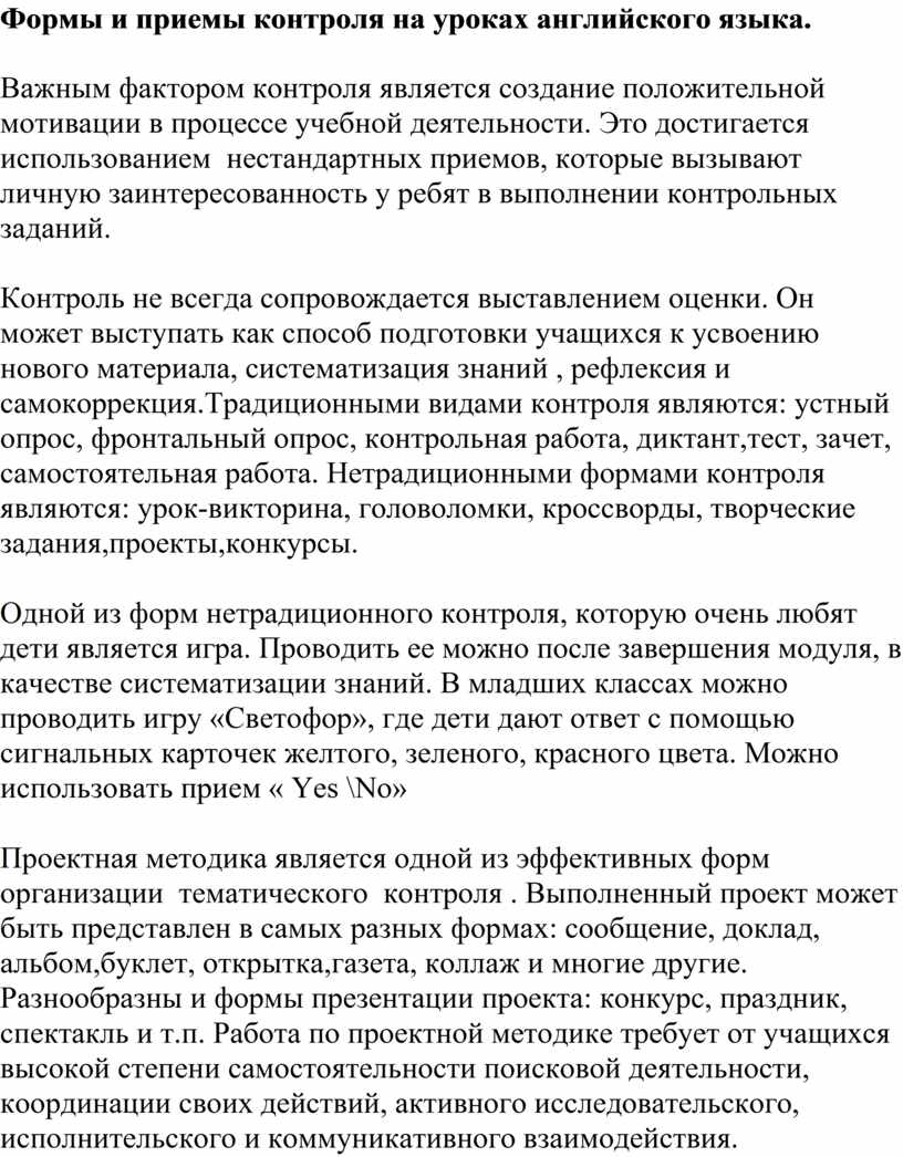 Формы и приемы контроля на уроках английского языка.