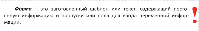Создание документа на основе шаблона заключается в заполнении опре- деленной формы, создаваемой шаблоном.